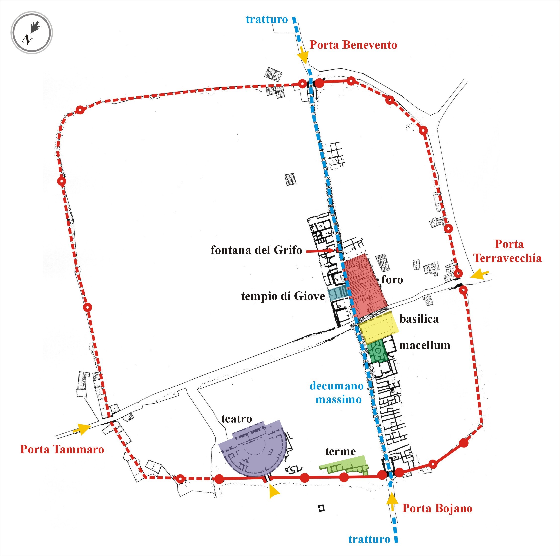 - Porta Bojano, situata a cavallo del tratturo (decumano) -
