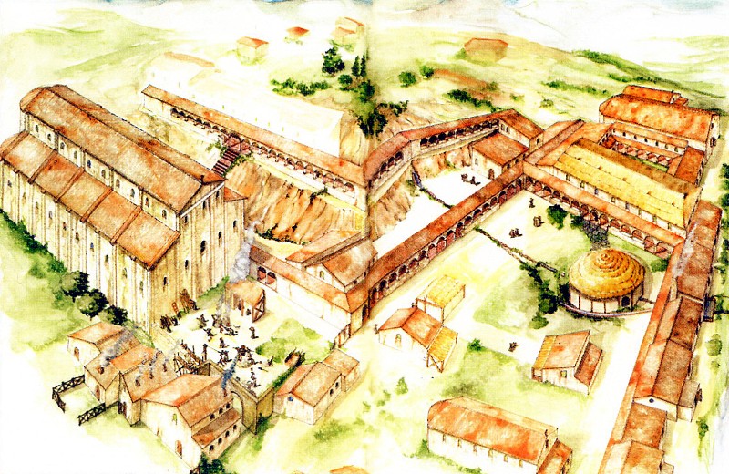 - Ricostruzione della città monastica nel IX secolo (a cura della Missione Archeologica) -